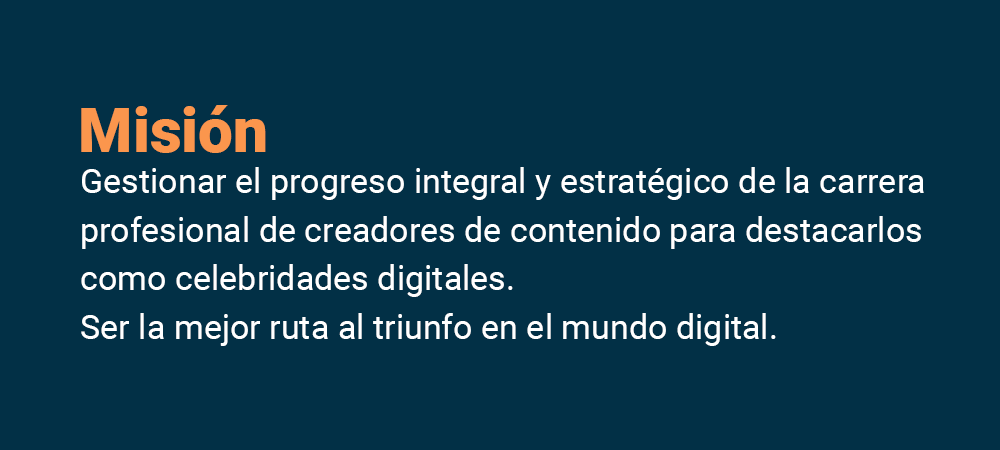 Creadores de contenido digital respaldados por el establecimiento de su marca personal y estrategia de negocio, acompañados por un programa de coaching personal y profesional. Al mismo tiempo, influencers afines a un nicho, con contenido de valor que permita alinearse a la identidad de marca de quien contrate los servicios.
